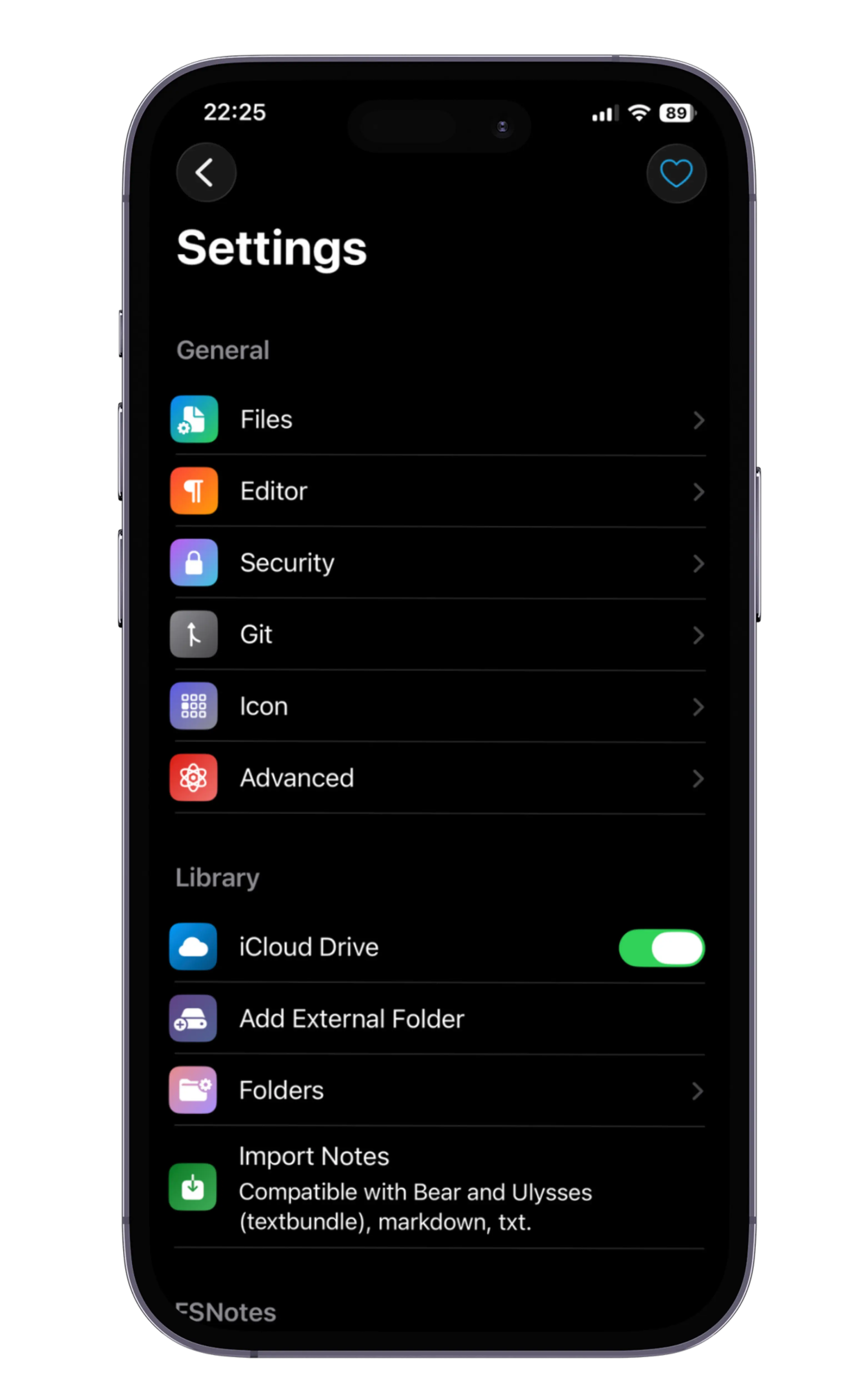 - Sync via iCloud Drive.