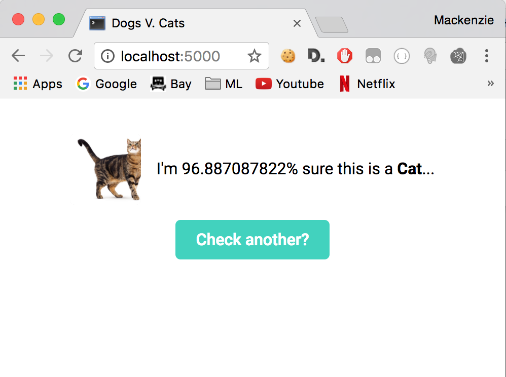 This classifier was trained on a 6-layer convolutional neural network, using tflearn. The dataset was obtained from Kaggle. The accuracy was ~80% and I'm excited with the results. I used Sentdex as reference.