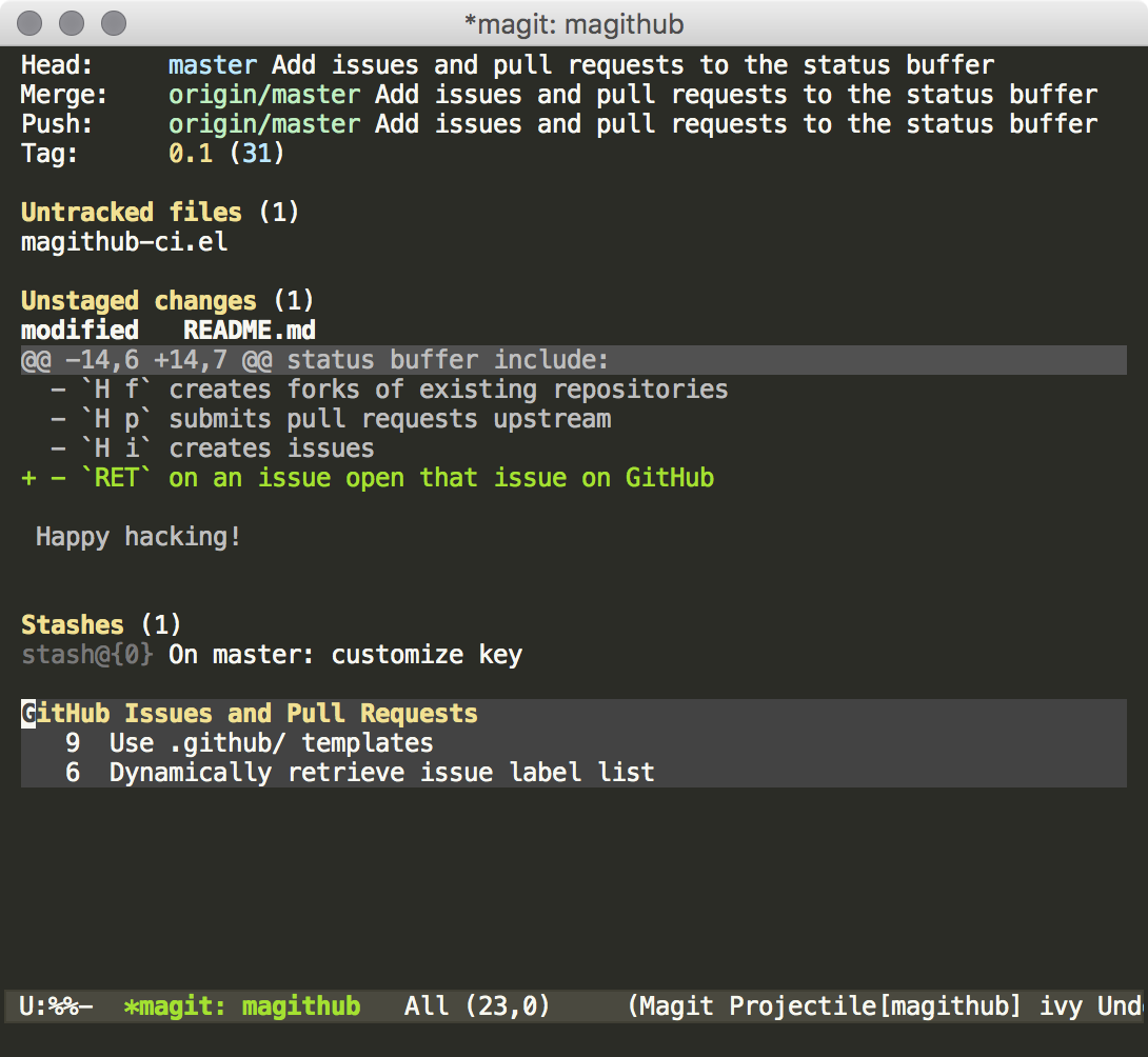 I'm happy to announce this revision of Magithub! Despite being a nominal change from 0.1 to 0.1.1, this is a huge jump in featureset and overall stability.